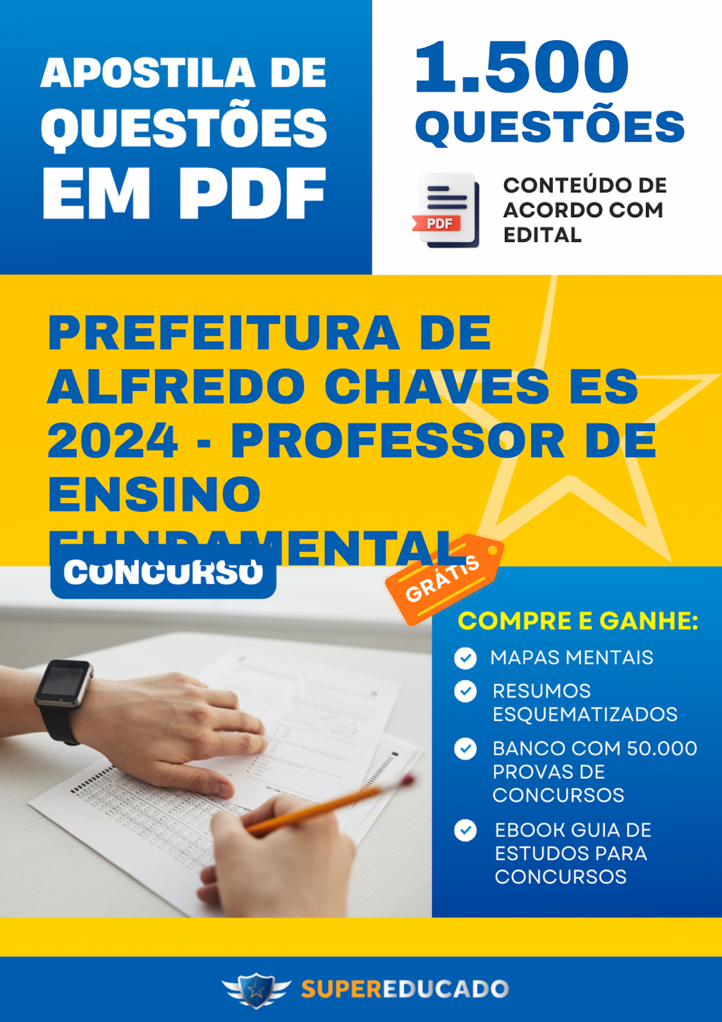 Apostila de Questões para Concurso da Prefeitura de Alfredo Chaves ES 2024 - Professor de Ensino Fundamental - 1.500 Questões
