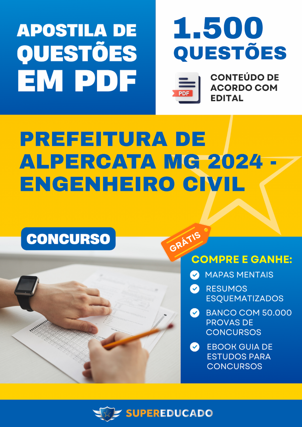 Apostila de Questões para Concurso da Prefeitura de Alpercata MG 2024 - Engenheiro Civil - 1.500 Questões