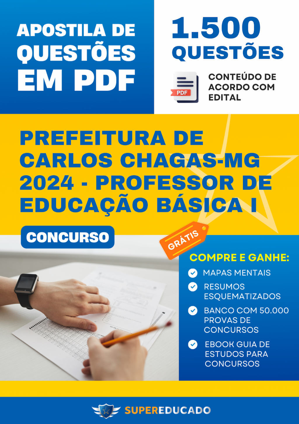 Apostila de Questões para Concurso da Prefeitura de Carlos Chagas-MG 2024 - Professor de Educação Básica I - 1.500 Questões