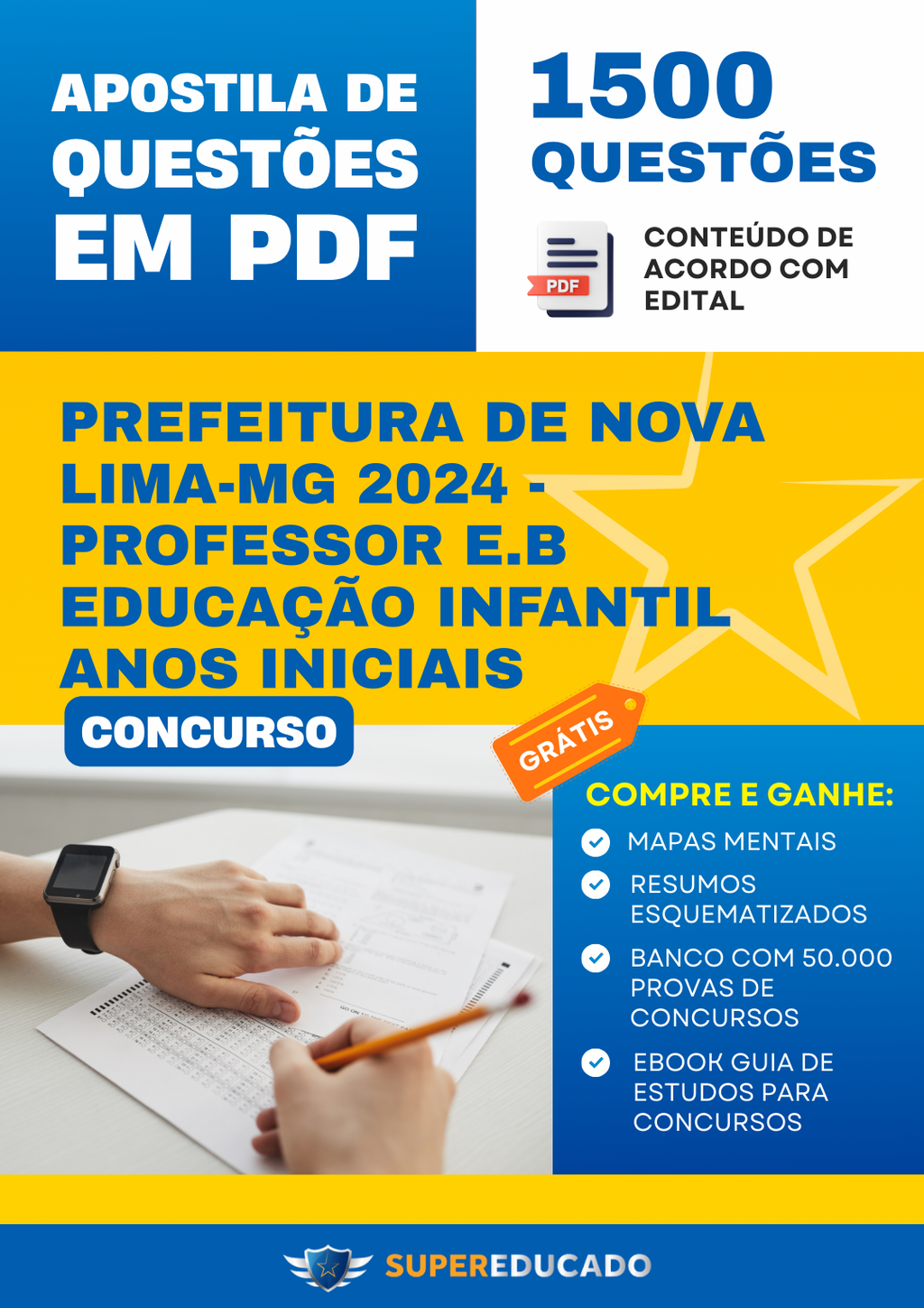 Apostila de Questões para Concurso da Prefeitura de Nova Lima-MG 2024 - Professor E.B Educação Infantil Anos Iniciais - 1.500 Questões