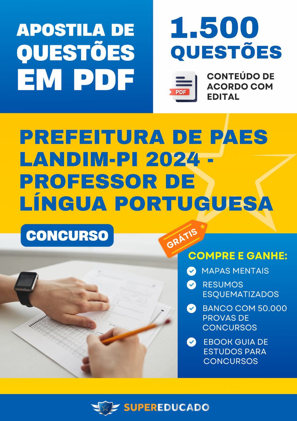 Apostila de Questões para Concurso da Prefeitura de Paes Landim-PI 2024 - Professor de Língua Portuguesa - 1.500 Questões