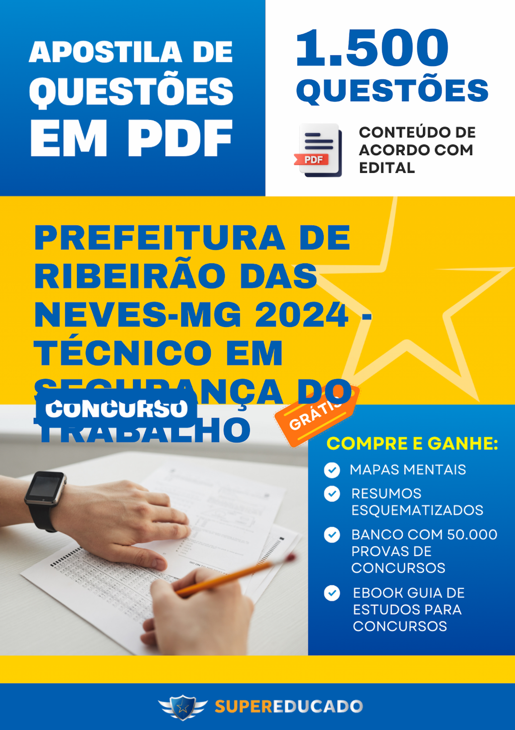 Apostila de Questões para Concurso da Prefeitura de Ribeirão das Neves-MG 2024 - Técnico em Segurança do Trabalho - 1.500 Questões
