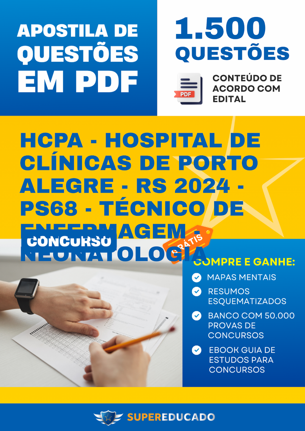 Apostila de Questões para Concurso HCPA - Hospital de Clínicas de Porto Alegre - RS 2024 - PS68 - Técnico de Enfermagem - Neonatologia - 1.500 Questões