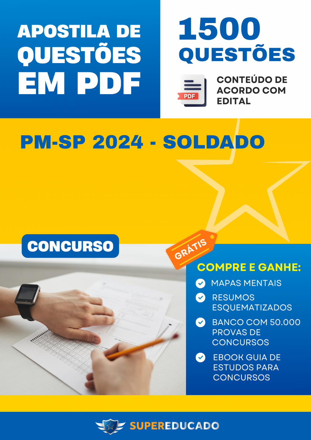 Apostila de Questões para Concurso PM-SP 2024 - Soldado - 1.500 Questões