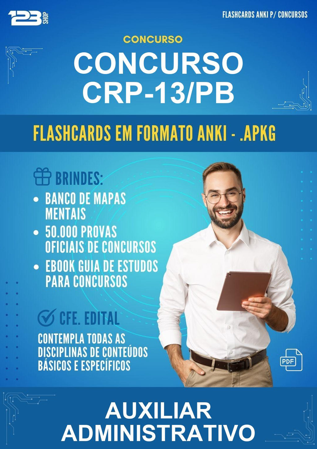 Flashcards Anki para Concurso Crp-13/PB para Auxiliar Administrativo em formato PDF - 400 Flashcards Anki
