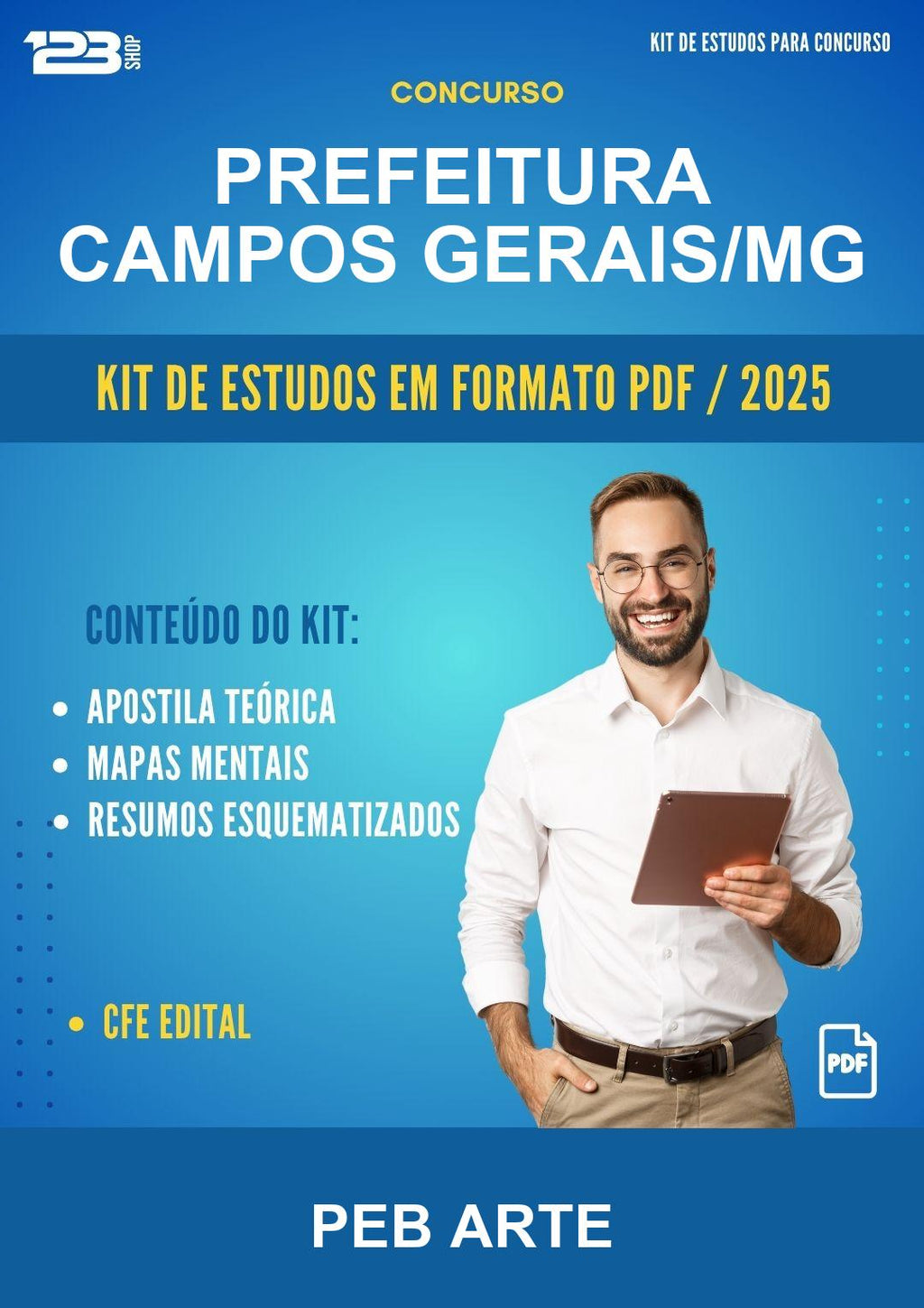 Kit de Estudos para Concurso Prefeitura Campos Gerais/MG para Peb Arte em formato PDF